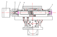 1-步進電機 2-聯軸套 3-角接觸球軸承 4-滾珠絲杠副 5-密封氈
