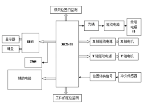 本數控系統(tǒng)采用MCS一51單片機作為控制系統(tǒng),外接的程序存儲器是8KB的2764芯片。數控系統(tǒng)通過輸入檢測沖頭位置和運動狀態(tài)的傳感器信號,以便控制沖頭和X軸、Y軸的運動情況。數控系統(tǒng)要實現對人機對話的管理,需要通過顯示器、鍵盤??刂泼姘迳闲枰O置啟動鍵、暫停鍵、X及Y點進、退鍵,參數設定鍵,還有十個數字鍵及各種狀態(tài)指示燈等。數控系統(tǒng)都通過MCS-51單片機的接口來實現與外界輸入、輸出接口的連接,單片機與接口電路分別采用不同的開關電源供電。結論,隨著電子技術快速發(fā)展,我國的機床數控化在近十年來有了很大的發(fā)展,然而數控設備的普及卻受到一定條件的限制,一方面是數控設備價格非常貴,特別是小企業(yè)如果想用數控設備替代原有的舊機床,資金方面會成為一大難題;另一方面是企業(yè)現有的舊設備完全拋之不用,會對資源造成很大的浪費。如果能夠對現有的設備進行一些技術改造,提高其自動化加工的能力,則不僅給企業(yè)節(jié)約了資金,而且能夠充分利用原有的資源。因此對普通沖床進行數控化改造在實際生產中得到廣泛應用。 本文針對普通沖床進行了數控化改造,主要對機械傳動部分和控制部分進行了改造。機械部分把原有的工作臺改造為含有縱、橫兩個方向的工作臺,控制系統(tǒng)利用微機對縱、橫向系統(tǒng)開環(huán)控制,驅動元件采用步進電機,傳動系統(tǒng)采用滾珠絲桿,數控部分采用了8051單片機控制,對相關電路設計作了詳細的闡述,并對沖床的加工流程做了進一步的說明,編寫了相應的流程圖。經改造使普通沖床實現數控沖床的功能,不僅提高了生產效率,降低了勞動強度,而且提高了加工精度,也就提高了產品的質量,給企業(yè)增加了強大的生命力。
